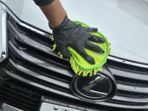 と言うのもガラスコーティングは簡易的なコーティングとは違い、しっかりとした下地処理が必要になるからです。油分系のコーティングを施工するとボディー表面の傷を一時的埋める効果がありますが、ガラスコーティングは油分を含まない成分であるため研磨をし、取る必要がありますし、新車でも若干の傷やシミは存在します。