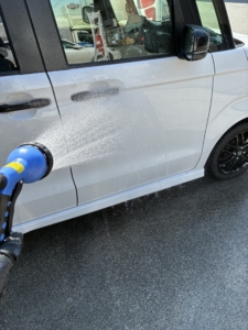 中性洗剤等で洗われているかと思いますが洗剤の乾きが早くなってしまうおそれもありシミの原因にもなりかねません。そういったリスクを減らすにはまず時間帯を変えてみる事をオススメします。例えば朝だったり夕方の日差しが落ち着いてきたタイミングです。比較的涼しい時間に洗う事で熱中症のリスクを下げる事もできて安心して車を洗えるかと思います。この時期は特に大変なので日陰で洗車を行うなど無理のない範囲でやって行きましょう。そして人にとっても車にとってもキツイ夏を乗り切って行きましょう。