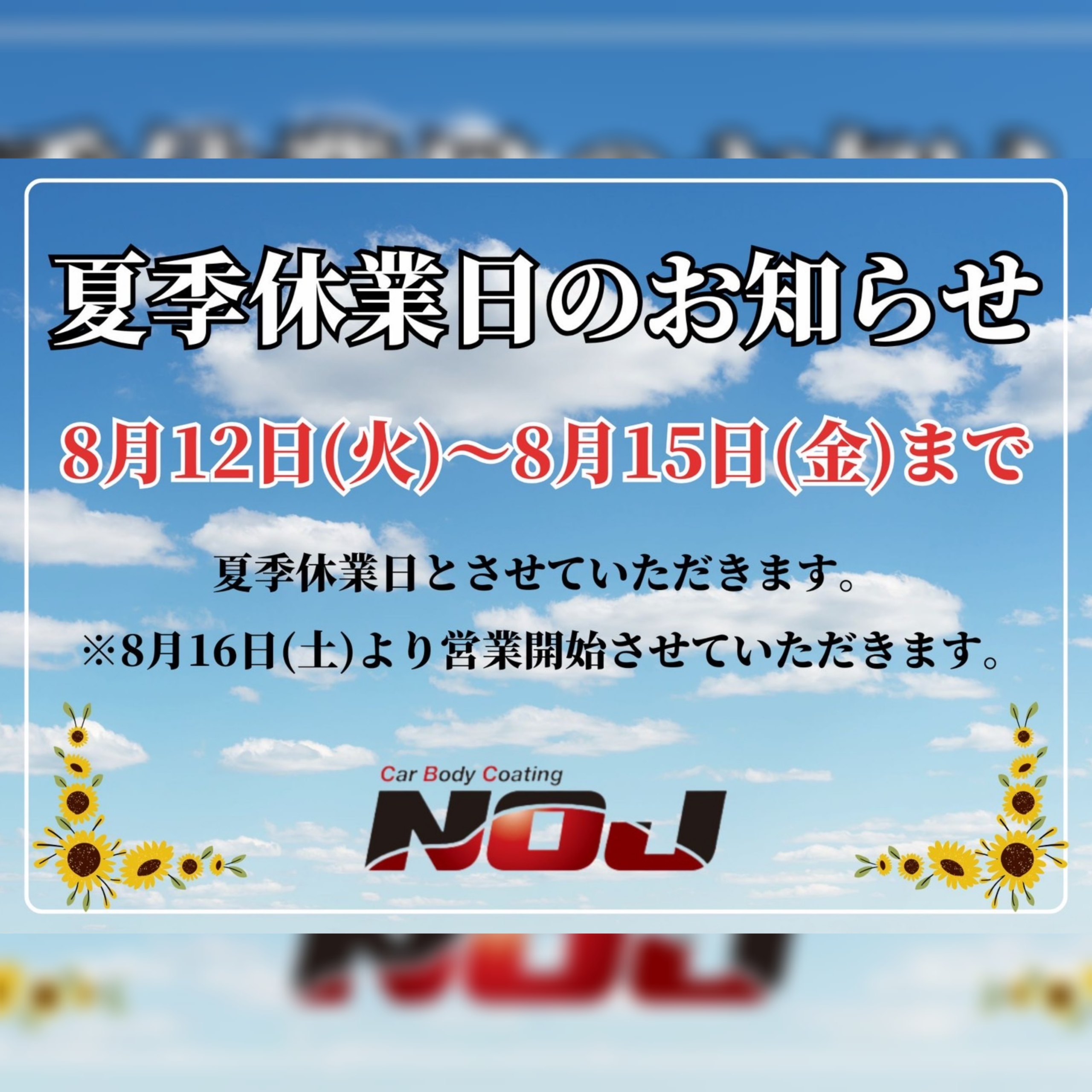 なお、8月16日(土)10:00より通常営業を再開いたします。