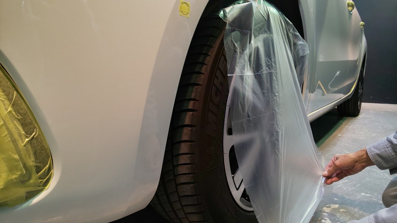 キズや水アカの除去また塗装本来のツヤ肌を引き出す為に研磨を施しますので研磨粉の進入防止や磨けない箇所のパーツ保護の為しっかりとマスキングを施します!