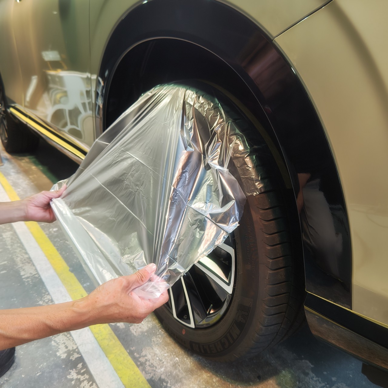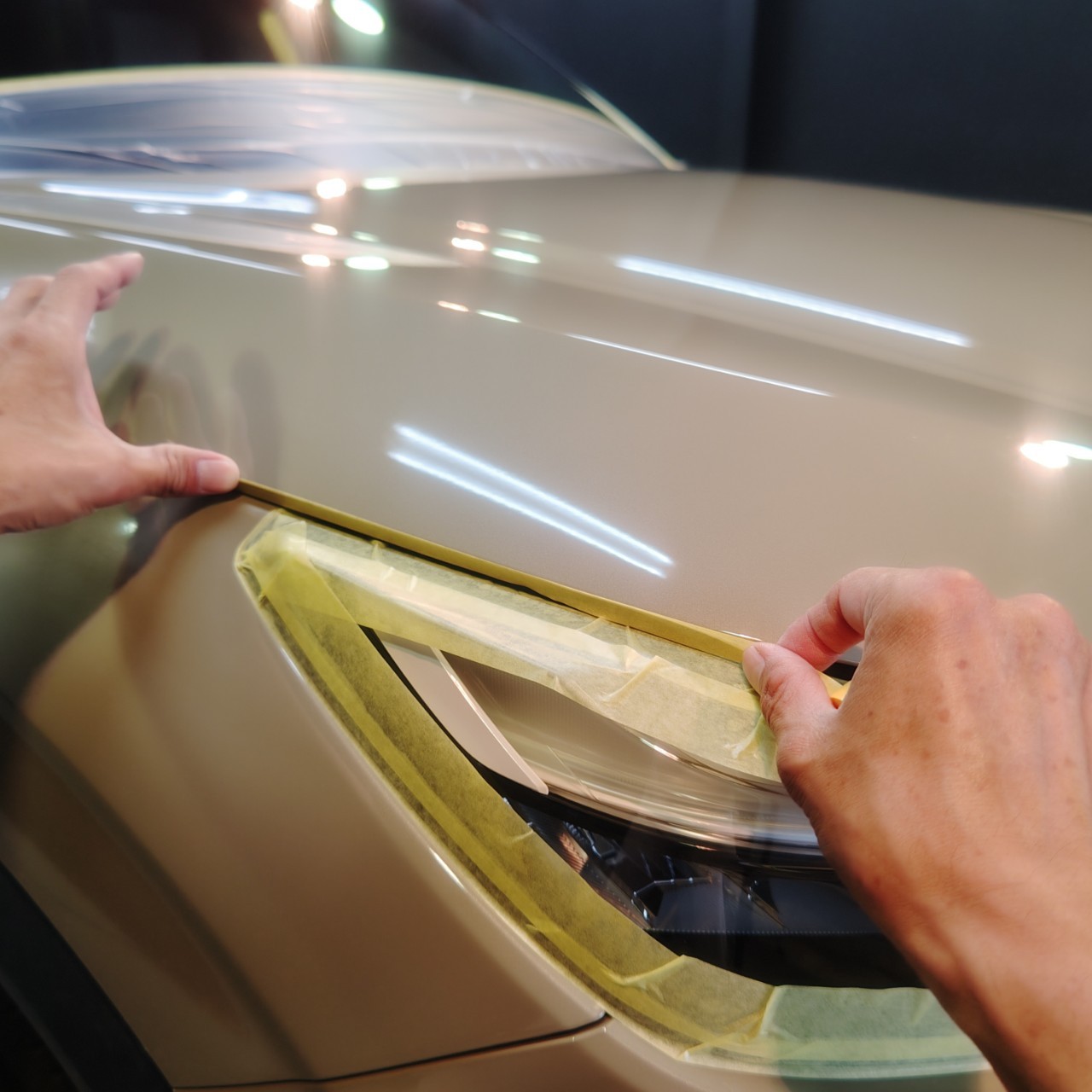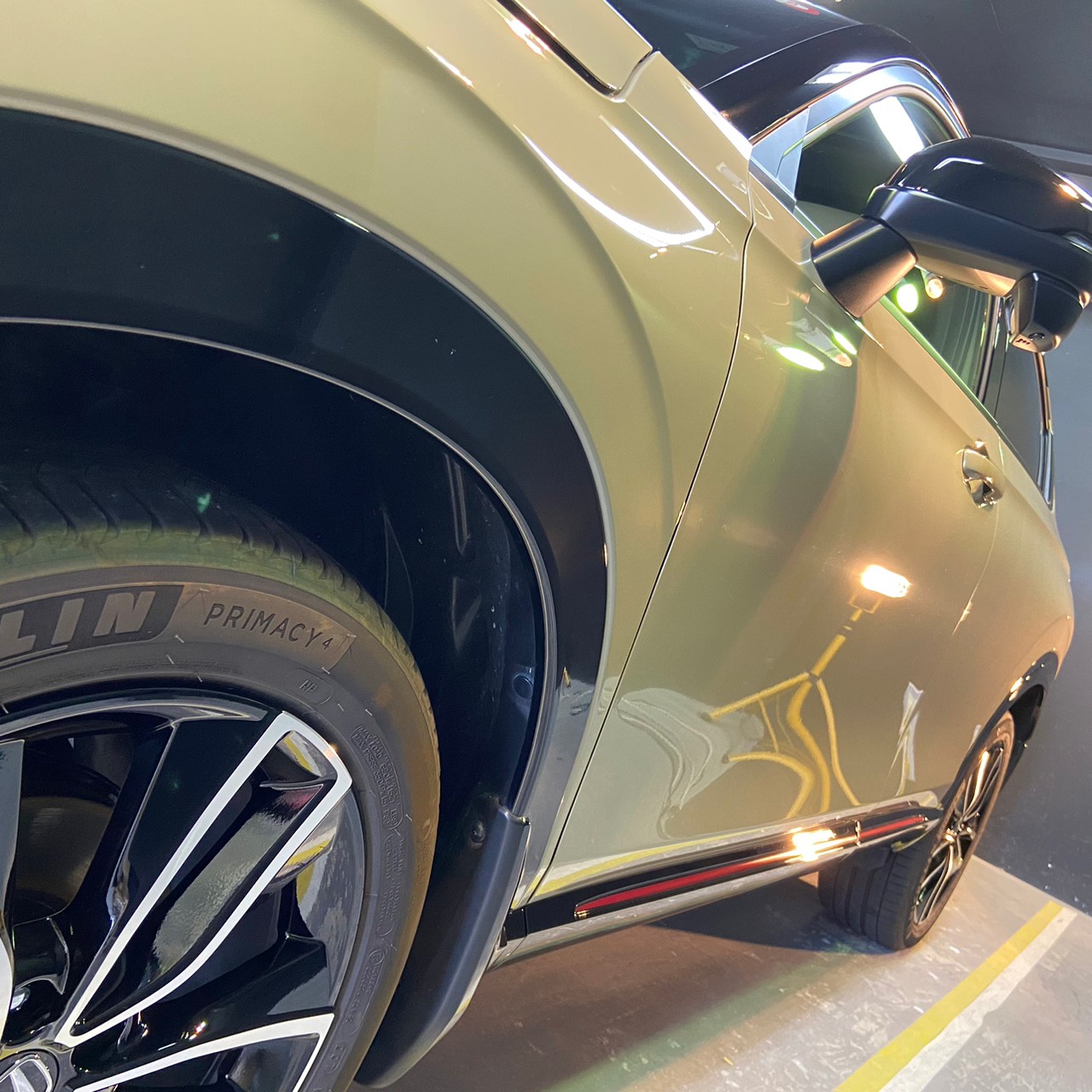 新車も経年車も関係なく、ご入庫直後は下準備として洗車からスタート。出来る限りこの段階で、水アカなども専用ケミカルを使用して除去を行います。