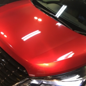 経年車では紫外線や酸性雨などにより痩せてしまったクリア層、研磨処理にて削られたクリア層を補う意味合いでも完全硬化型コーティングの補填により効果的面!これからの外的要因からのダメージを軽減し塗装をしっかりと保護してくれます(๑•̀ •́)و✧