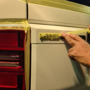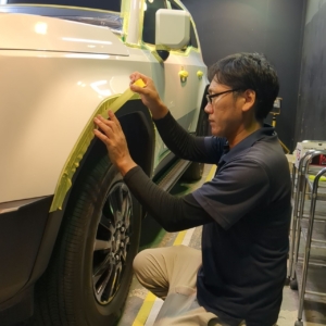 それでは多数のケミカル剤を用い新車でも念入りに下準備を施し研磨での負担を極力抑え研磨作業の準備に取り掛かります