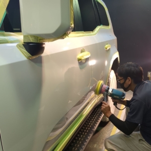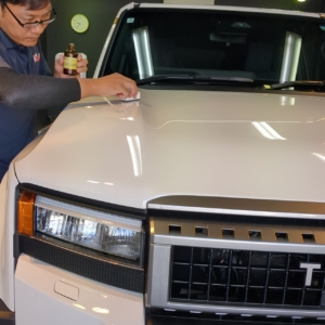 新車でも輸送中や保管の際に付着してしまった水アカ、納車までの洗車による水道水による不純物の水滴痕をしっかり取り除いていきます!